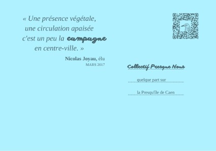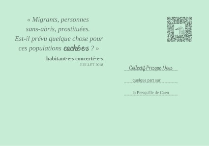A l’intérieur, une collection de quatre cartes postales qui jouent avec les mots utilisés par les usagers et acteurs de la Presqu’Île pour définir ce territoire à emporter ou à agrémenter d’un mot doux.
