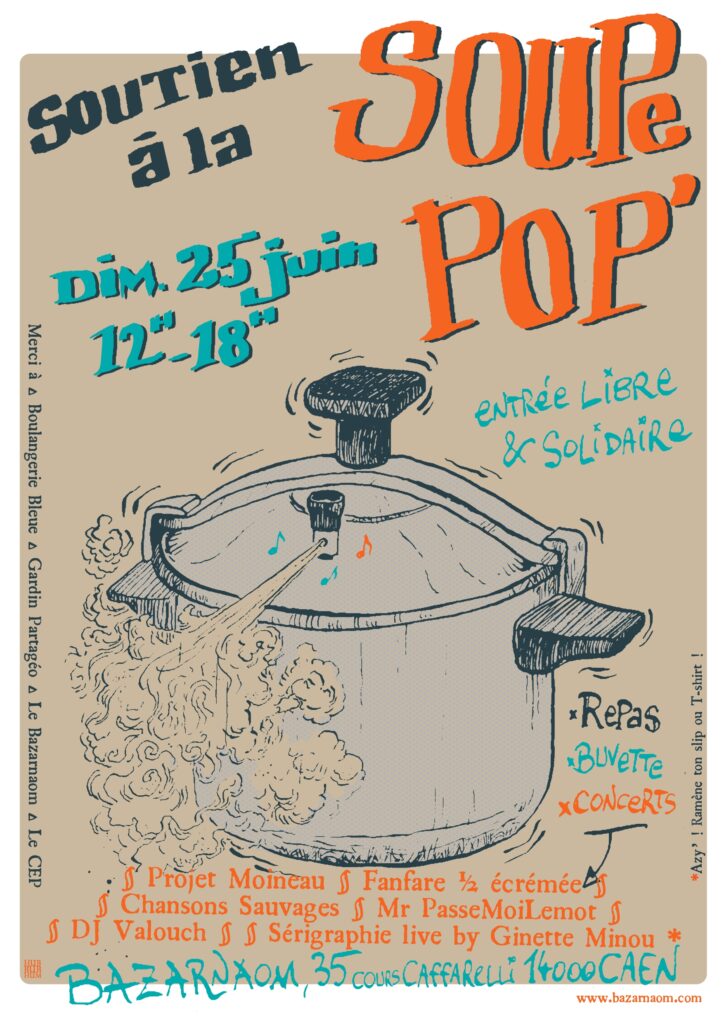 Evénement ouvert à tou.te.s à prix libre, afin de soutenir la Soupe Populaire, une initiative citoyenne qui propose une distribution de repas tous les samedis midi (sauf l’été) sur la Presqu’île, devant le Bazarnaom, à l’attention des personnes isolées, marginalisées et très précaires, depuis 2020 !