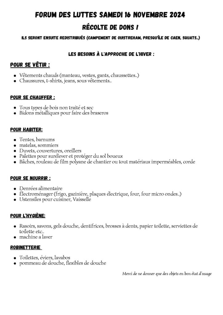 Cet événement permettra également de collecter du matériel et des dons pour les luttes.