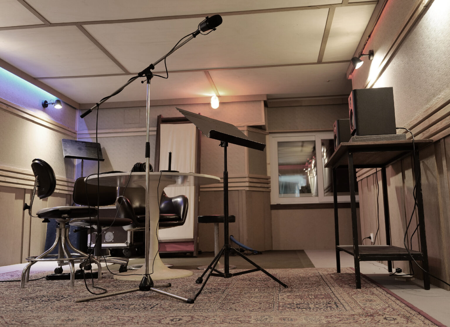 Il se compose ainsi : un grand studio de 7m x 4m (hauteur 2,10m), un petit studio de 2,5m x 2,5m, une cabine régie 4m x 2,5m.